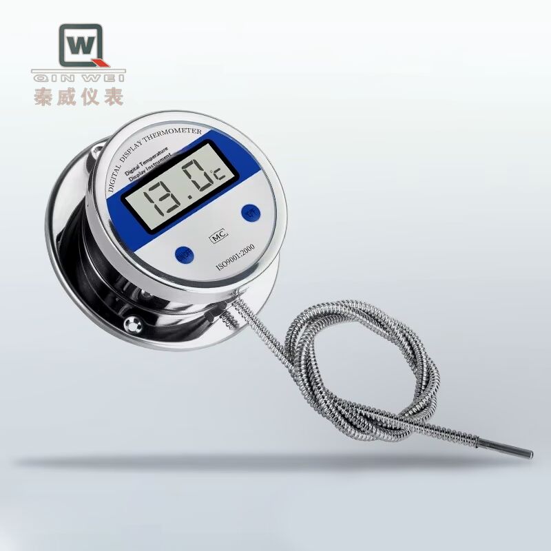 Digital display industrial thermometers are on-site temperature measurement devices that integrate temperature sensors, digital displays, and intelligent circuits. They can directly show temperature values at the probe end, eliminating the need to rely on control room instruments for readings. This is a direct upgrade of traditional pointer-type bimetallic thermometers, solving the problems of non-intuitive on-site readings and low accuracy. They are widely used in temperature measurement of pipelines, equipment, and storage tanks in industries such as petroleum, chemical engineering, power, and food.